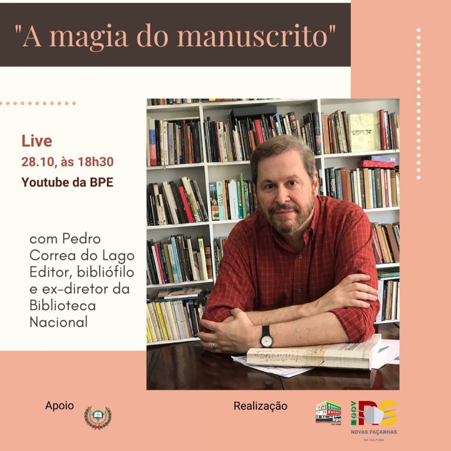Dia 28/10/2021, às 18h30, com apoio da Academia Rio-Grandense de Letras, acontece a live "A magia do manuscrito", com Pedro Corrêa do Lago, ao vivo, no Youtube da BPE.