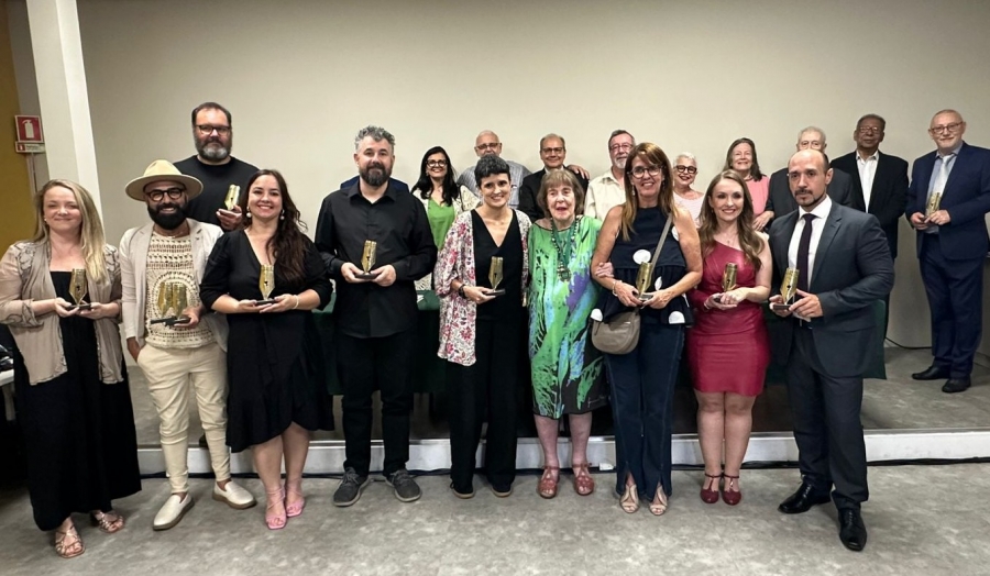 Em solenidade na Casa da Memória Unimed na noite de quinta-feira, 18 de dezembro, a Academia Rio-Grandense de Letras entregou o prêmio literário de 2025. A escritora Martha Medeiros recebeu o Troféu Academia Rio-Grandense de Letras – Escritora do Ano, e a Casa da Memória Unimed o Troféu Olinto de Oliveira, pelo desenvolvimento de ações de promoção cultural no estado.